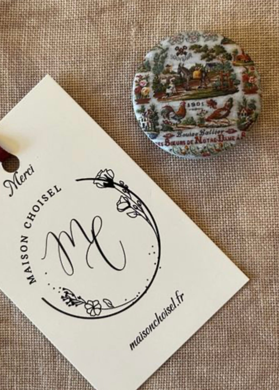 Gorgeous needleminder with a strong magnet featuring the image of Reflets de Soie sampler. Perfect for keeping your needle safe on your stitching!