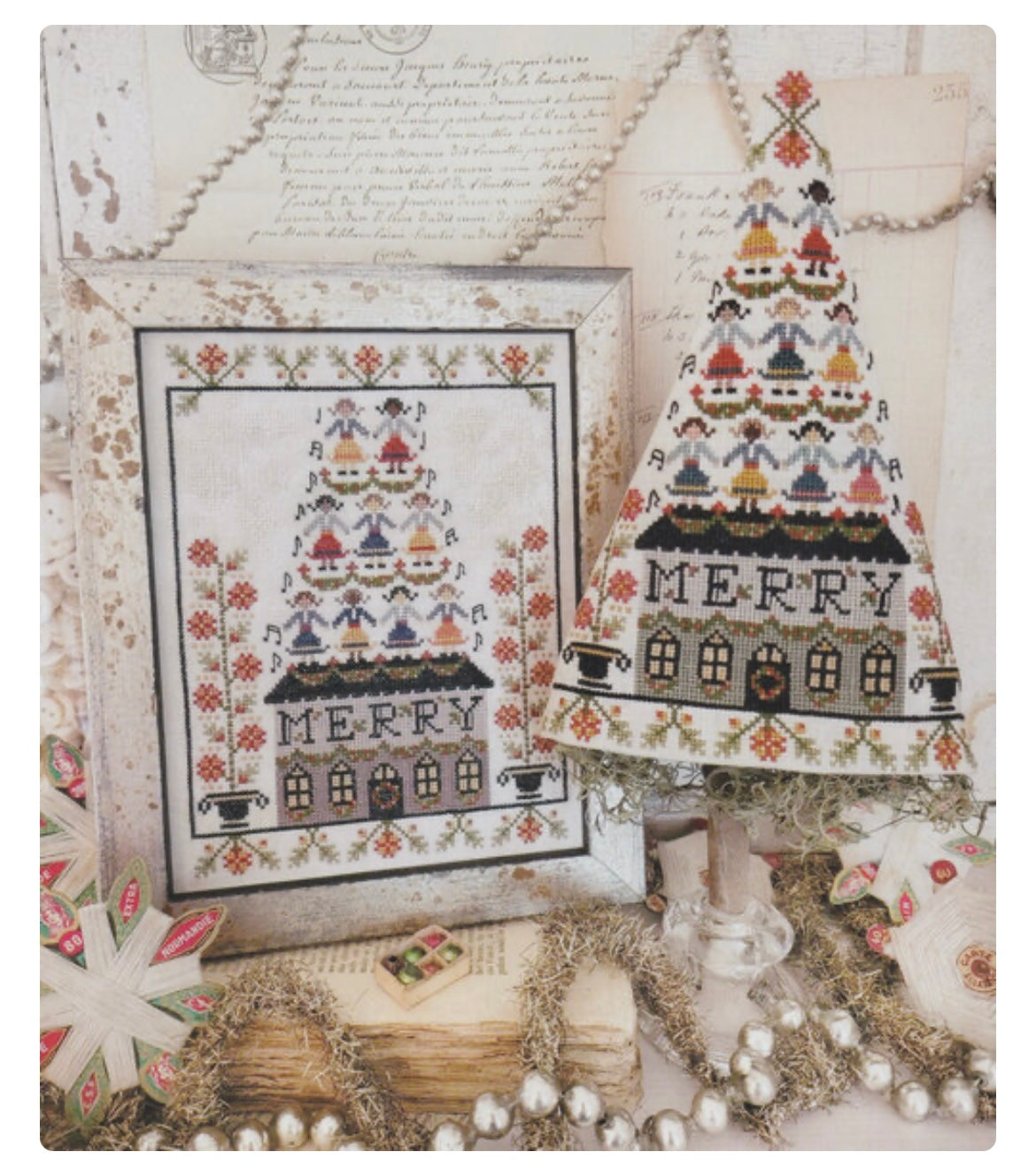 Cross stitch pattern from Hello from Liz Matthews featuring the 9th day of Christmas with women caroling!