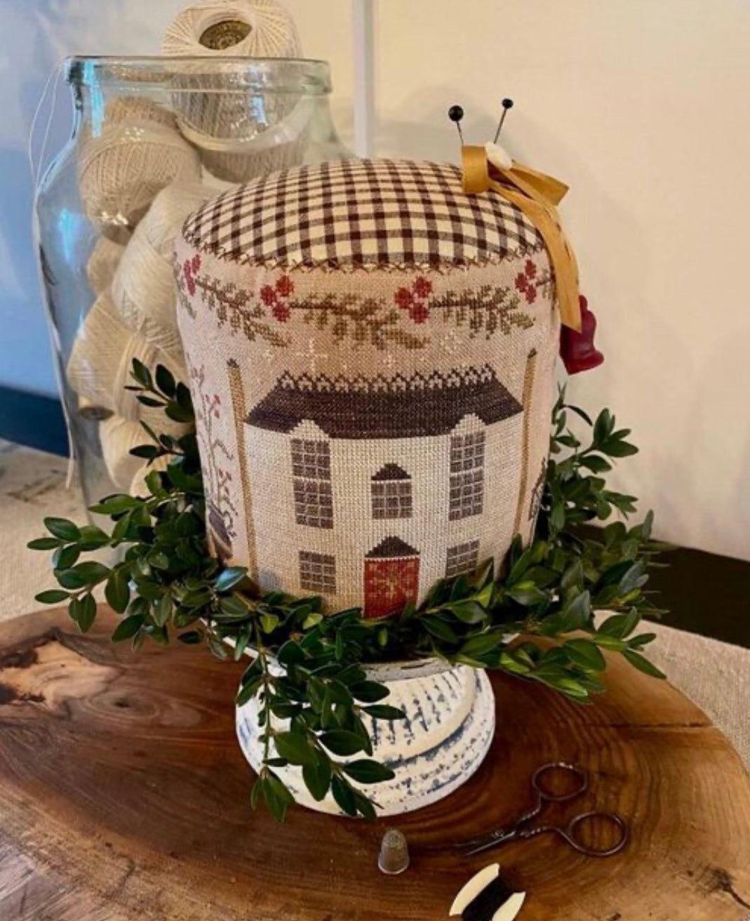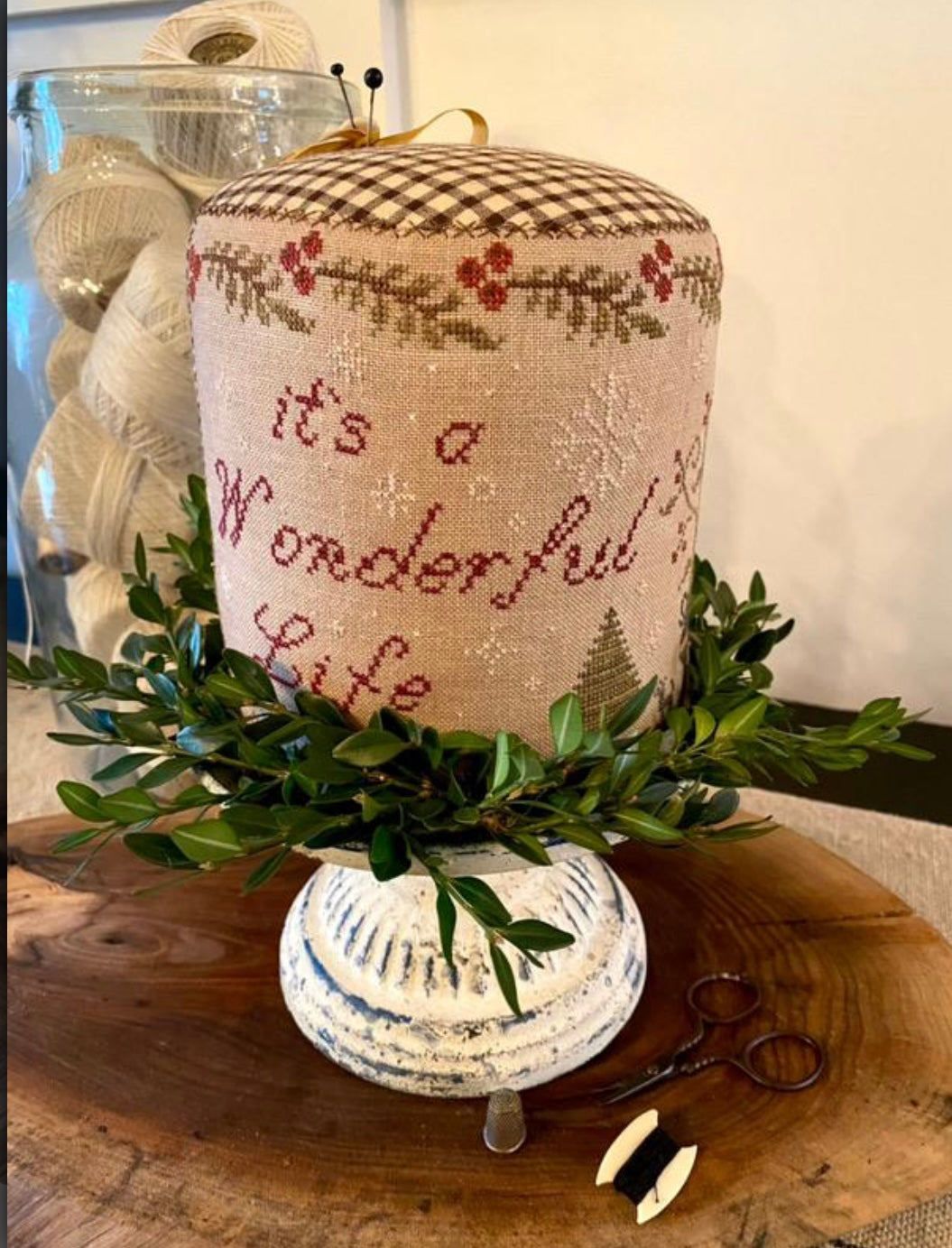 Cross stitch pattern from Stacy Nash Primitives featuring a drum that says "It's a Wonderful Life!"